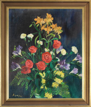 Hans Ripa, Blomsterstilleben Signerad Ripa och daterad -75. Duk 73 x 60 cm. Krackelyr. Läs mer...