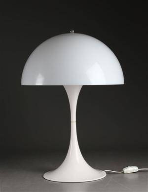 Verner Panton, bordslampa, "Panthella", Louis Poulsen. Vit akryl. Etikettmärkt "Louis Poulsen 123430 Made in Denmark". Skärmens diameter 51 cm. Höjd 70 cm. Ej funktionstestad. Obetydligt Läs mer...