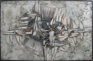 Ubekendt kunstner. Komposition. Relief på plade. Usign. 77 x 119 cm (79 x 121).