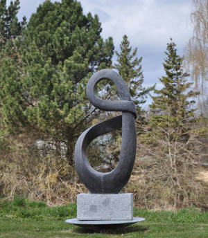 Abstrakt skulptur af sort marmor, sokkel af granit