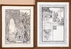 En samling grafik og tegninger mm., diverse kunstnere, bl.a.: Joakim Skovgaard, Peter Ilsted, Lorenz Frölich, Karen Westman m.fl. Flere håndsignerede. Varierende mål. Uden rammer. Fremstår Läs mer...