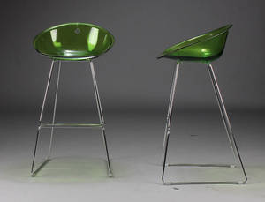 Pedrali/Italia. The Gliss Stool. To barstole, udført i grå akryl med understel i forkromet stål. H. 96 cm., B. 51 cm. Sh. 77 cm. Fremstår Läs mer...