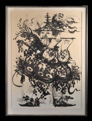 Bjørn Wiinblad (1918-2006), figurkompositioner, offset-tryk, indrammet med glas / opklæbet på papplade, begge tryksign. 170x63 cm. 70x69 cm. (70x70 cm). Glas defekt samt ene med Läs mer...