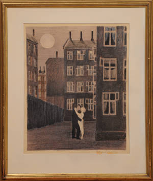 Litografi i farver. Betegnet "Til Valdemar" og sign. Folmer Bendtsen. Indrammet med passepartout. Lysmål 47 x 62 cm. Läs mer...