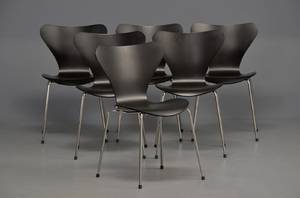 Arne Jacobsen. Sæt på seks stole 'syveren' , mod...