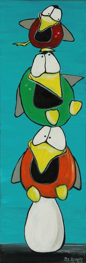 Pia Birgitte Stenderup f. 1968. Figurkomposition. Akryl på lærred. Sign. Pia Birgitte. 120 x 40 cm. Uden ramme.