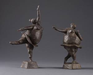 To skulpturer af støbt bronze i form af ballerinaer, med runde former stående i forskellige positurer. Højde 23 og 30 cm. Läs mer...