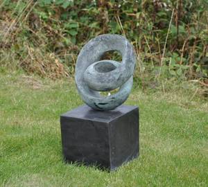 Skulptur af bronze, grønpatineret. Sokkel af sort marmor