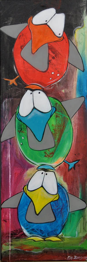 Pia Birgitte Stenderup. F. 1968. Figurkompositioner. Akryl på lærred. Sign. Pia Birgitte. 120x40 cm. U.R.