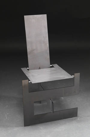 Stol / Skulptur i laserskuret stål. Tillverkad i Sverige. H. 92 cm.