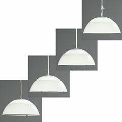 Arne Jacobsen: "AJ". Sæt på fire pendler af hvidlakeret metal. Udført hos Louis Poulsen. Diam. 37. (4)