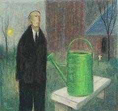 Den grønne vandkande. Sign. Albert 65 samt med dedikation på bagsiden. Oliekridt på papir. Lysmål 55 x 55.