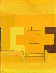 Arne L. Hansen: Komposition. Sign. ALH. Olie på lærred. 45,5 x 35.