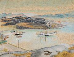 Avslutade auktioner liknande Ubekendt maler, 20. årh.: To partier fra Grønland. Sign. hhv. N. N. 34. Lau Lyng 1935. Vandfarve på papir. Lysmål 26 x 33 32 x 53. (2).