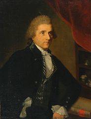 Ubekendt maler, ca. 1800: Portræt af en herre med stribet vest og kravat. Olie på lærred. 91 x 70.