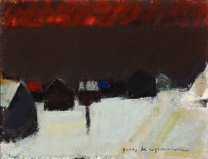 Jack Kampmann. Landskabsparti med færøsk bydg (c...
