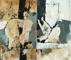 "Kamp". Sign. FH. Olie på masonit. 76,5 x 88.