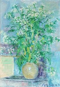 Avslutade auktioner liknande Albert Naur: Vase med grene. Sign. Naur 48. Olie på lærred. 96 x 67.