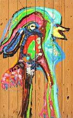 "K 822 200". Sign. Lis Zwick 72. Olie på rå brædder monteret med søm. 132 x 83.
