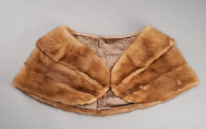 Vintage Cape af Pastel Dawn mink, foret med brunfarvet silkefoer, front med hægtelukning.