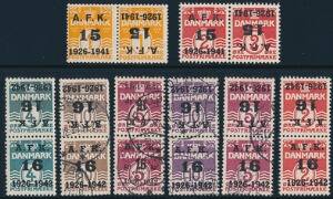 1941-1942. Udstillingstiltryk. "A.F.K. 15 1926-1941" og "A.F.K. 16 1926-1942". Sæt med 16 mærker i Tête-Bêche parstykker. Også ændrede overtryks-typer. Særdeles sjældne