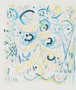 Egill Jacobsen: Komposition. Sign. EJ 85, 32/125. Litografi i farver. Bladstørrelse 65 x 47.