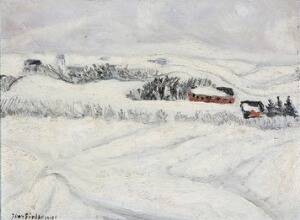 Avslutade auktioner liknande Jens Søndergaard: Vinterlandskab med gård. Sign. Jens Søndergaard. Olie på lærred. 31 x 41.
