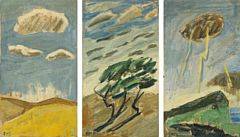 Avslutade auktioner liknande Olivia Holm-Møller: Tre landskabskompositioner. Alle sign. OHM. Olie på lærred. Hver 46 x 26,5. (3)
