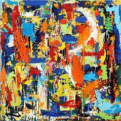 Jan Christensen: "Komposition". Sign. på bagsiden Jan Christensen, 2014. Akryl på lærred. 100 x 100. U.r.
