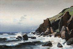 Fritz Stæhr-Olsen. Kystparti med klipper ved Mels...