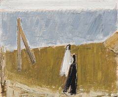 Johannes Hofmeister 1914-1990. Olie på lærred. Komposition med to personer i landskab. Sign. JH. 50 x 61 (64,5 x 75,5) cm. Med bopæl i Hjørring Läs mer...