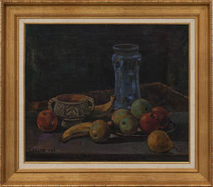 Edvin Ollers (1888-1959), Sverige. Signerad, daterad 1954, Stilleben. Olja på pannå, 26x29 cm, yttermått inklusive ram: 34x40 cm. Edvin Ollers, född 1888 i Norrtälje, död Läs mer...