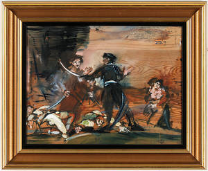 Konstnär född: 1941 Hästar i strid. Signerad: Bo Åke Adamsson Mått på duk: 64 x 60 cm Mått inklusive ram: 68 x 64 cm Konditionsrapport: Läs mer...