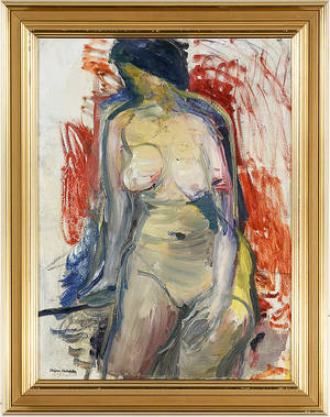 Staffan Hallström (1914-1976) olja på duk, 71 X 64 cm, signerad Staffan Hallström, a tergo påskrift "Till vännen Elvin från Staffan Julen 1944" Läs mer...