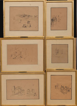 Georg Stoopendaal (1866-1953), Sverige. Tillskriven, Kavallerister till häst. Monogramsignerad. Blandteknik, bildmått: 14x22 cm, yttermått inklusive ram: 35x43 cm. Georg Wilhelm Stoopendaal, svensk målare och tecknare Läs mer...