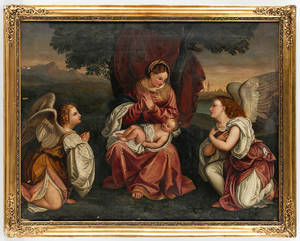 Tizian, efter, 1700-tal, Uppfodrad duk 92 x 68 cm. Retuscher, lagningar. Läs mer...