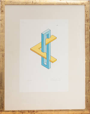 Oscar Reutersvärd (1915-2002), Sverige. Signerad, numrerad 34/190. Färglitografi, bildmått: 54x39 cm, yttermått inklusive ram: 72x56 cm. Oscar Reutersvärd, född 1915 i Stockholm, död 2002 i Läs mer...