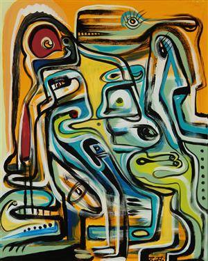Komposition af Per Eli (f. 1957), akryl på lærred, sign. Per Eli. 100 x 80 cm. Uden ramme. Læs kunstnerprofil her
