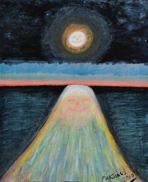 John Martinus. 'Måneflirt i Rødvig på Stevns', akryl på lærred, sign. Martinus 2010, 60 x 50 cm. Uindrammet. Dette maleri er en del af jubilæumsudstillingen 'Kendte Danskere Maler' for Lions Club. Hele beløbet (hammerslag, gebyr og salær) fra auktionen går ubeskåret til Lions Club, Danmark. Lauritz.com donerer således både køber- og sælgersalær. Læs mere om projektet her...