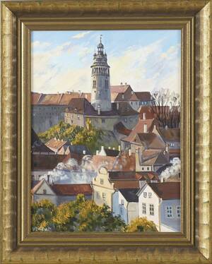 OIDENTIFIERAD KONSTNÄR, 1900-tal, stadsvy, signerad Vlasak, olja på pannå, ca 39x29 cm. 312443.