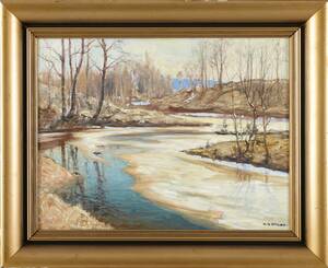 Nils Olzon (1891-1953), Sverige. Vårvinter. Signerad. Olja på duk, 48x67, yttermått inklusive ram: 60x78 cm. Nils Olzon, född 1891 i Stockholm, död 1953, svensk målare Läs mer...