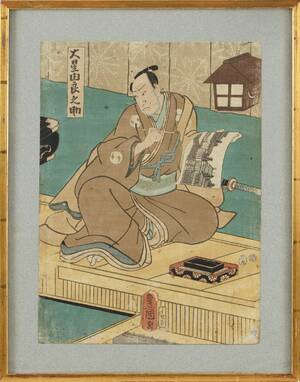 UTAGAWA KUNISADA (1786-1864) (2): samuraj, interiör, 1800-tal, träsnitt, obanformat. 656685. Läs mer...