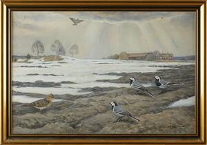 NILS TIRÉN (1885-1935): Sädesärlor, signerad och daterad Nils Tirén 1931, 66 x 97 cm. 305973.