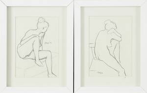 BOLYA, I (samtida): (2) Modellstudier, varav en signerad I Bolya, blyerts, vardera ca 17 x 12 cm. 306021.
