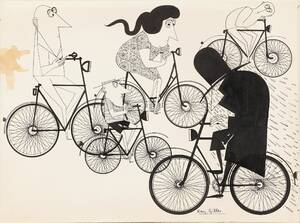 RAY GILLES (Belgien född 1923): 25 tuschteckningar - förlagor till tidningsillustrationer, delvis signerade, 30x42 cm och mindre. Oramade, fläckar.