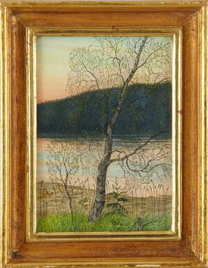 Per Julius, Björkar i solnedgång Signerad P. Julius. Akvarell, bildyta 27,5 x 38 cm. Ej examinerad ur ram. Läs mer...