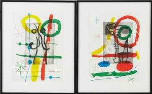 JOAN MIRO, (1893-1983): (2), Kompositioner, ur "Derrière le Mirroir", osignerade, färglitografi, Mourlot 363 resp 365, 37x27 cm. 295012.