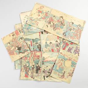TRÄSNITT, JAPAN (15), färgträsnitt, 15 st, 1800-talets senare del, crepe, ca 25,5x18 cm. Veck, smärre skador, några sitter ihop.