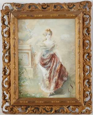 SCHIRRMANN, A (18/1900-tal): Porträtt av ung kvinna, signerad och daterad 1887, gouache på siden, 22x15,5 cm. 290223.