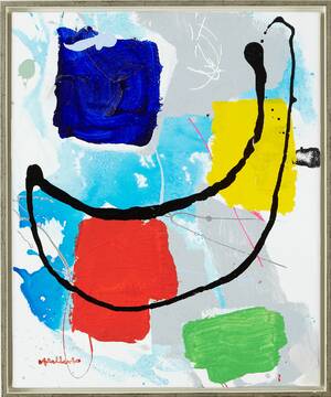 Konstnär född: 1953 Abstrakt komposition Signerad: Adalbert Mått på bildyta: 56 x 76 cm Konditionsrapport: Glas sönder i högra nedre hörnet, mindre slitage på ram, Läs mer...